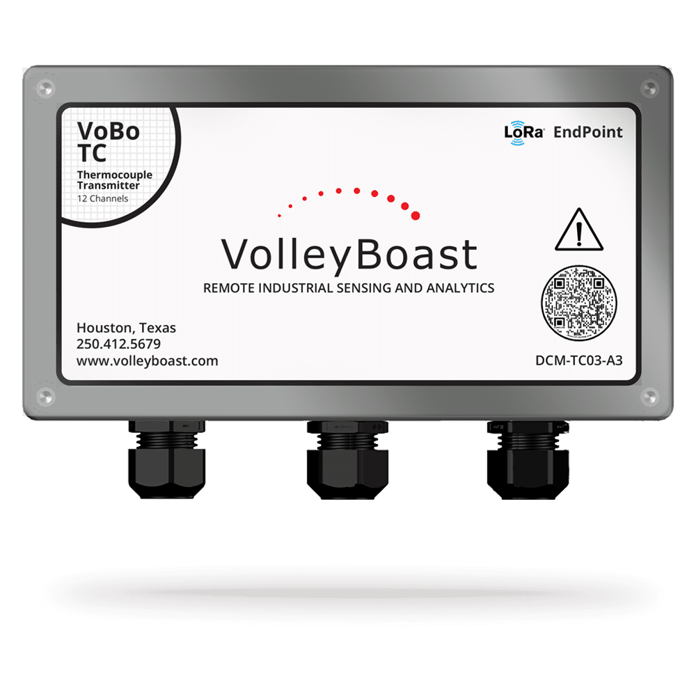 A 12-channel LoRaWAN thermocouple reader, certified for use in hazardous locations, converting wired sensors and transmitters into LoRaWAN enabled wireless long-range devices.